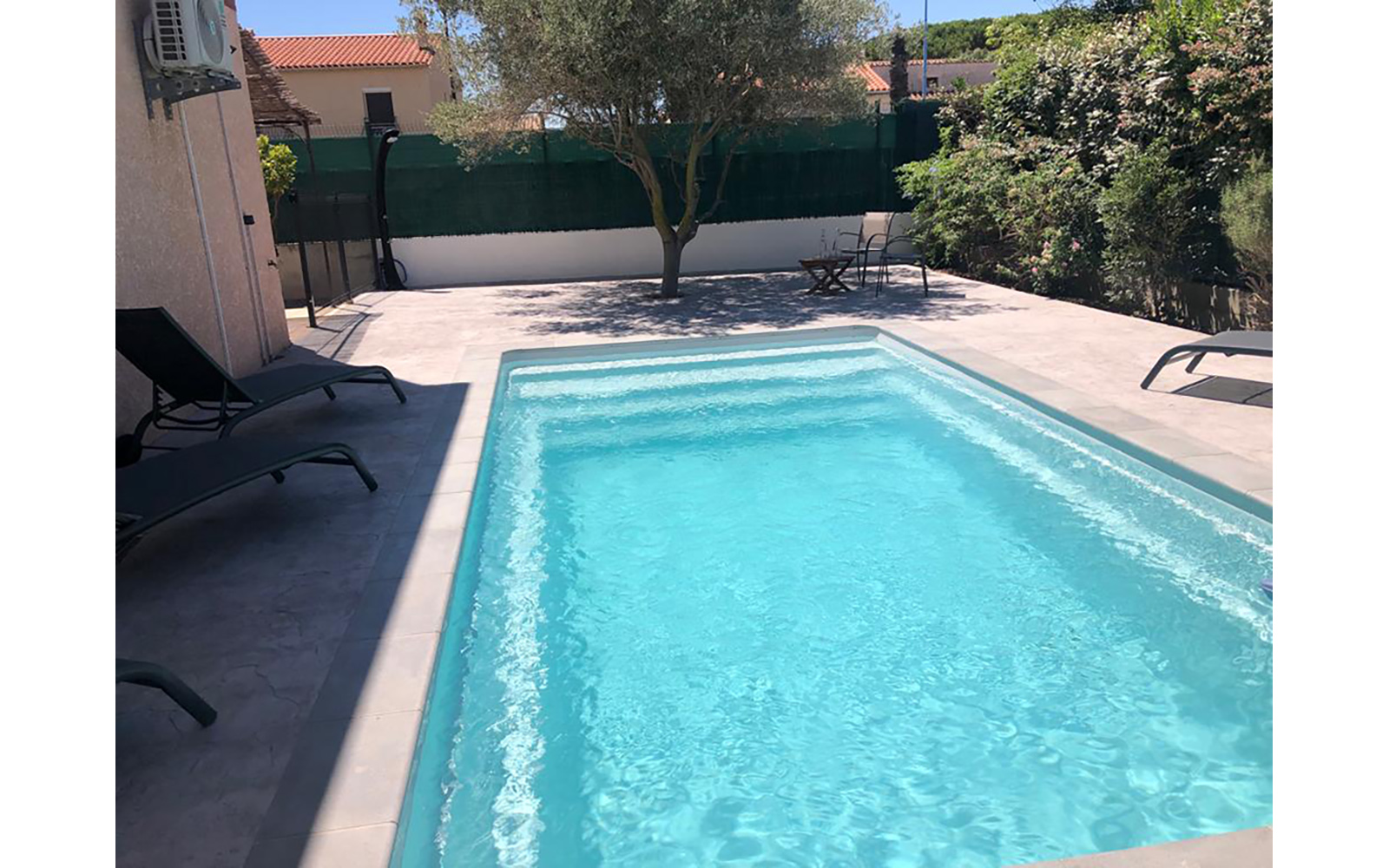 Extérieur aménagé avec piscine privée pour d’agréables moments de détente et de convivialité. Profitez de la piscine en toute saison et en toute sérénité même avec des enfants ou des animaux.Des bains de soleil sont à votre disposition.Extérieur aménagé
