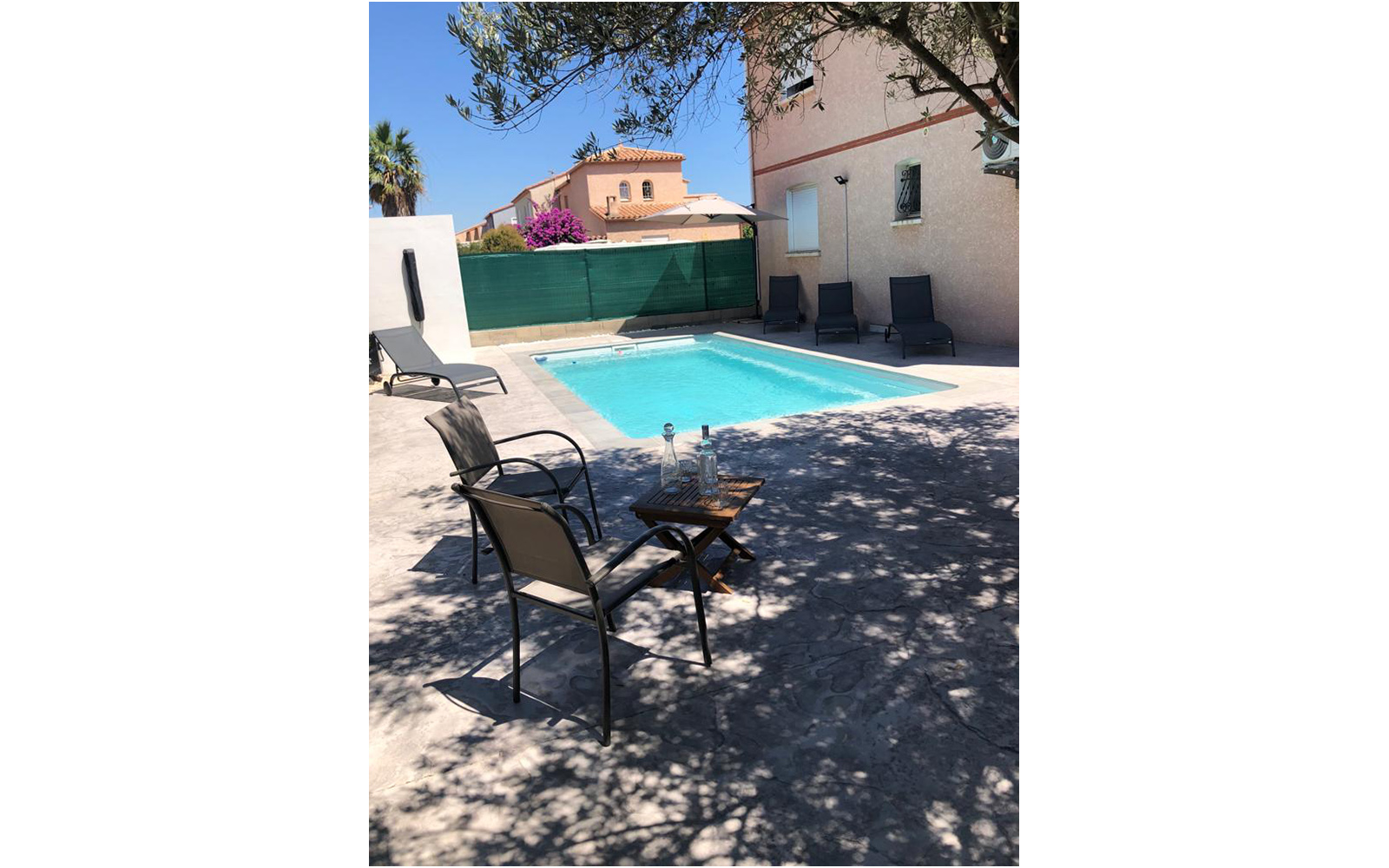 Extérieur aménagé avec piscine privée pour d’agréables moments de détente et de convivialité. Profitez de la piscine en toute saison et en toute sérénité même avec des enfants ou des animaux.Des bains de soleil sont à votre disposition.Extérieur aménagé